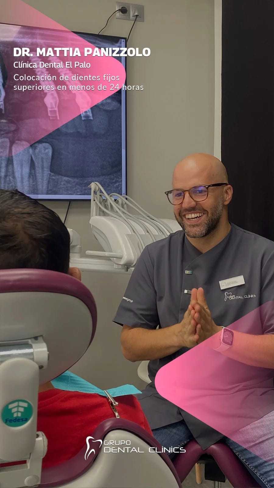 En Grupo Dental Clinics El Palo cuidamos tu sonrisa con tratamientos dentales de última generación: implantes y dientes fijos en 24 horas, carillas dentales, ortodoncia invisible. Más de 150 pacientes nos valoran como la clínica mejor posicionada de Andalucía gracias a nuestra atención personalizada y tecnología avanzada.